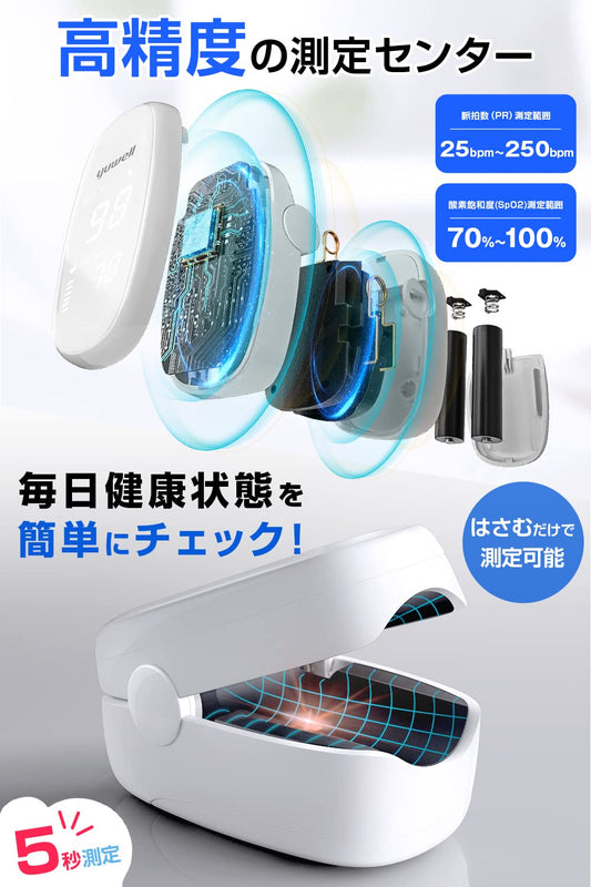 脉搏血氧仪(地方政府和都道府县政府采用)血氧浓度计,氧气浓度计,心率监测器,血氧饱和度/脉搏计,国内检验,最新家用,护理,高精度,易于操作,体积小,重量轻,便携,家用/登山,医疗器械认证,一年质保日文说明书医疗器械认证编号:304AFBZI00006000