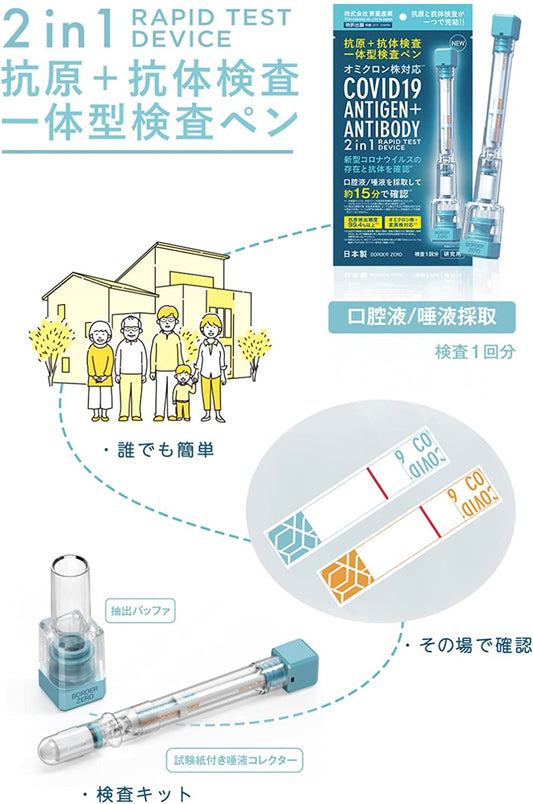 2in1抗原+抗体检测一体型[10个,日本制造]新型冠状病毒抗原检测试剂盒抗原/中和抗体检测笔型装置“研究用”